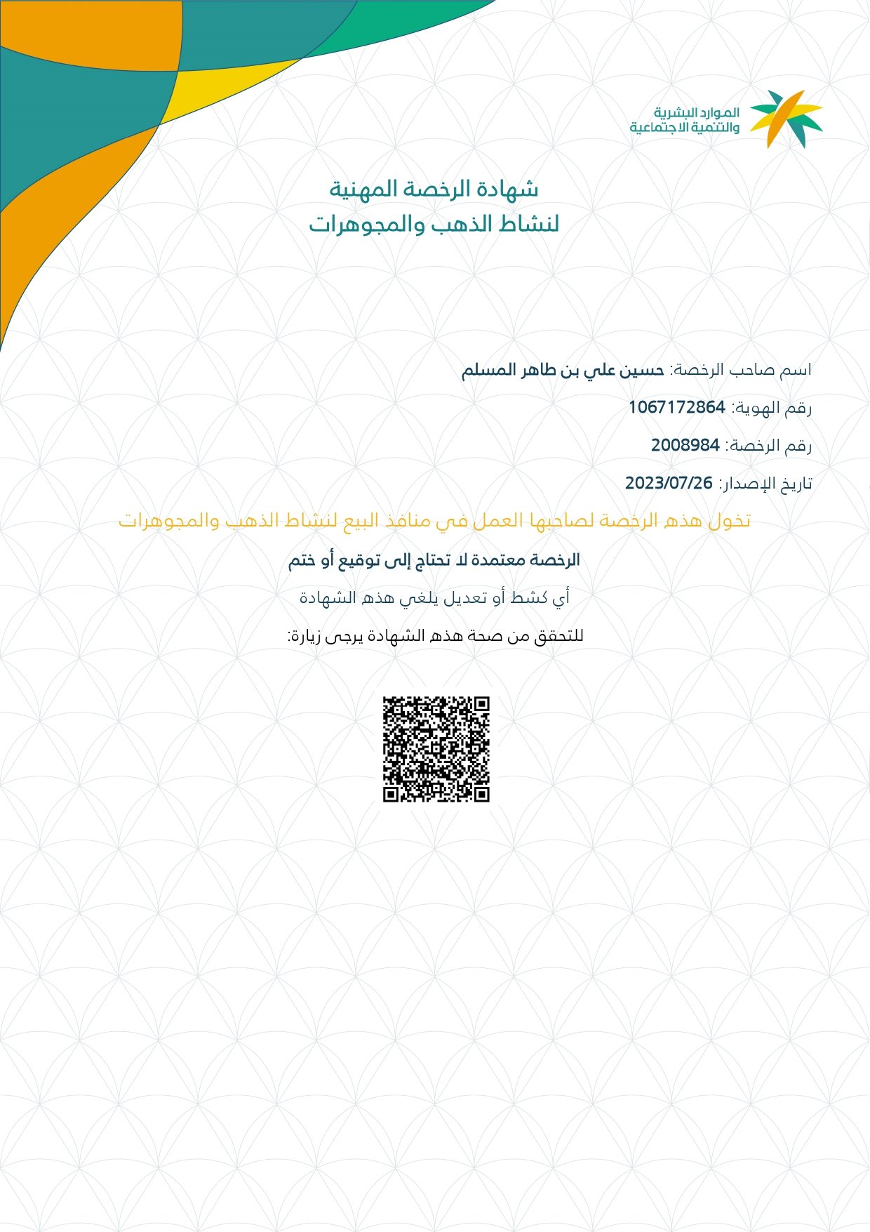 متجر زبرج مسجل وموثق في المركز السعودي للأعمال برقم توثيق 0000037784, وحاصلين على شهادة الرخصة المهنية لنشاط الذهب والمجوهرات برخصة رقم 2008984,