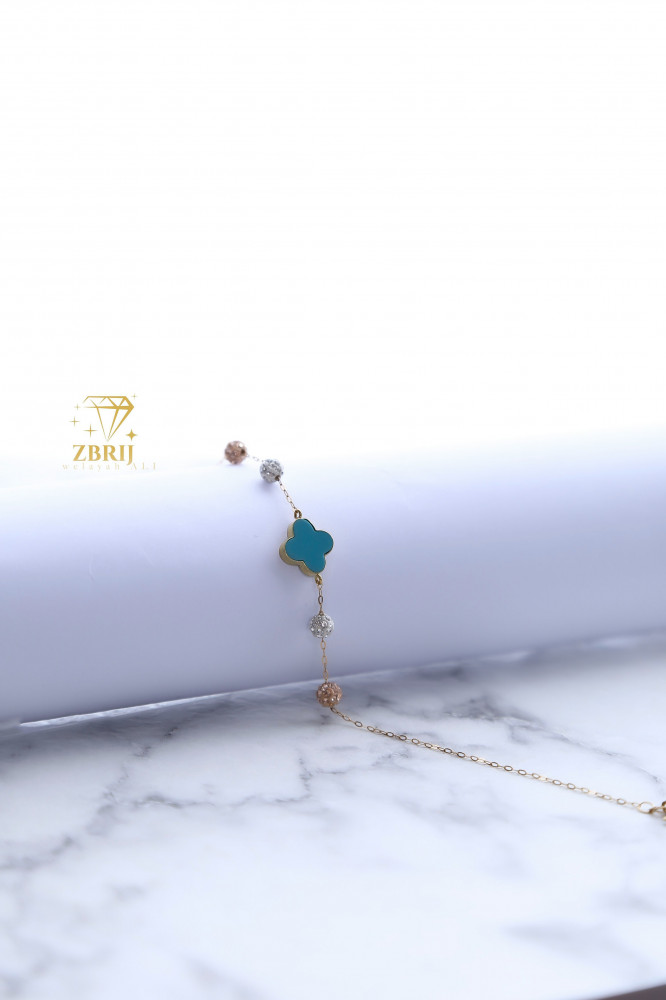 الاسم: إسوارة ذهب فان كليف لون سماوي مزينة بكريستال لون الأبيض والروز قولد